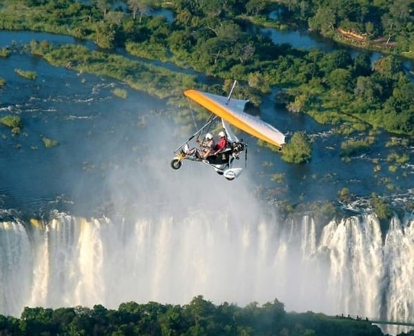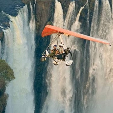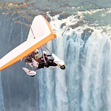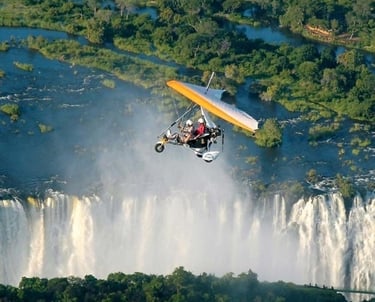 Microlight flights so you may see the Victoria Falls' stunning grandeur from a different angle. See the magnificent Falls, the nearby national parks, and the animals from above as you glide over the breathtaking Zambezi River. An up-close and spectacular flying experience of one of the Seven Natural Wonders of the World is provided by this thrilling, open-air ride. A once-in-a-lifetime experience, a microlight flight above Victoria Falls is ideal for adventurers and photographers.