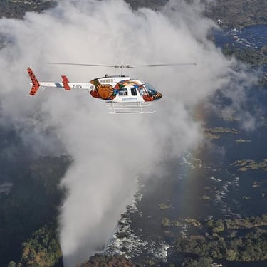 Description : Get a firsthand look with the "Flight of Angels" viewpoint, which David Livingstone first described in his 1855 article about finding The Falls. "Scenes so beautiful; angels must have looked upon them as they flew." The chopper heads out toward the breathtaking Victoria Falls after takeoff. To provide you with the finest viewing and photography possibilities, our pilot will fly loops over The Falls in both directions. Your flight concludes with a journey upriver and back via Zambezi National Park.